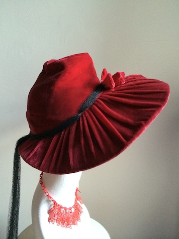 WW2 Red pleated velvet halo bonnet.