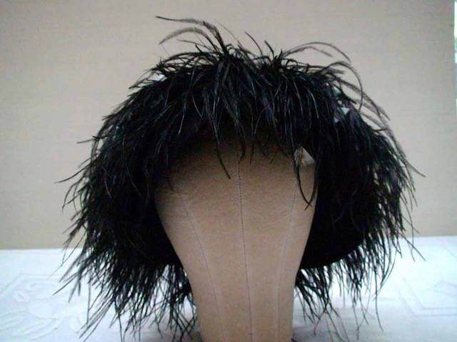 Black and white allover feather cloche.