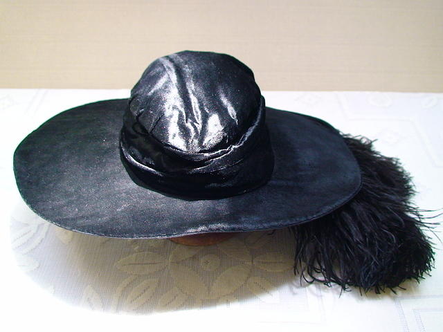 Black hand sewn panne velvet capeline