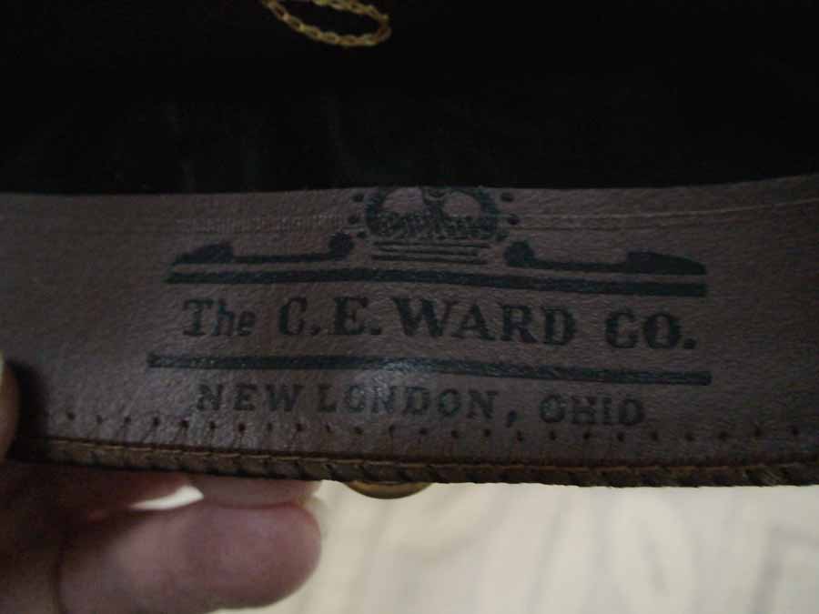 (stamped in leather band: The C.E. Ward Co. New London, Ohio. Alfred Winfield embroidered in the silk lining)