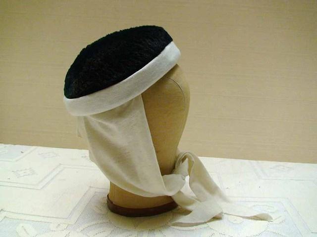 Scarf-hat pillbox with Renaissance revival elements, circa 1960s