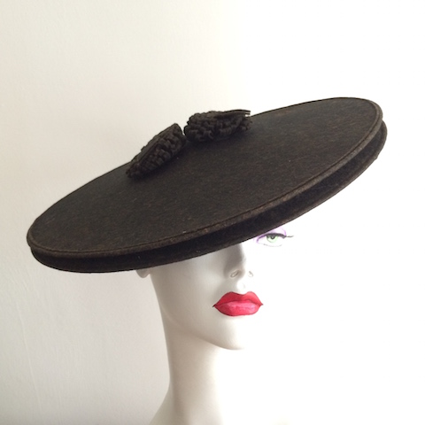 Double brimmed pancake tilt, brown/black heathered wool felt