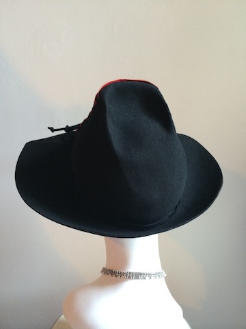 WW2 Black felt Tyrolean fedora with red suede front panel, large stitching and bow
