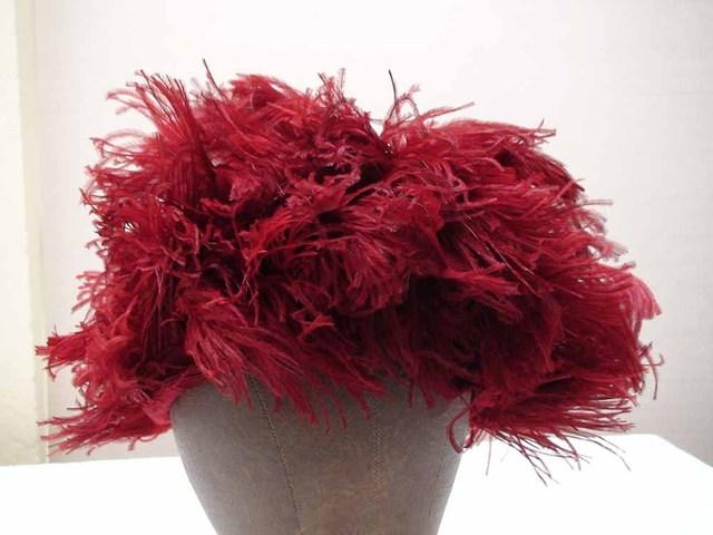 Red velour cloche with red feathers