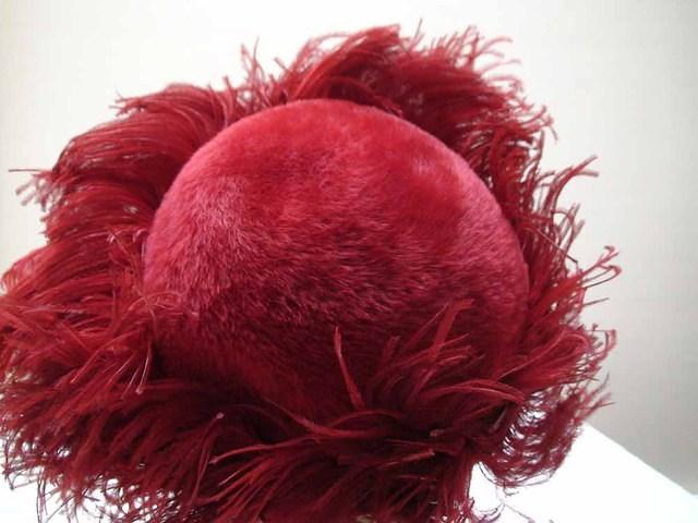 Red velour cloche with red feathers