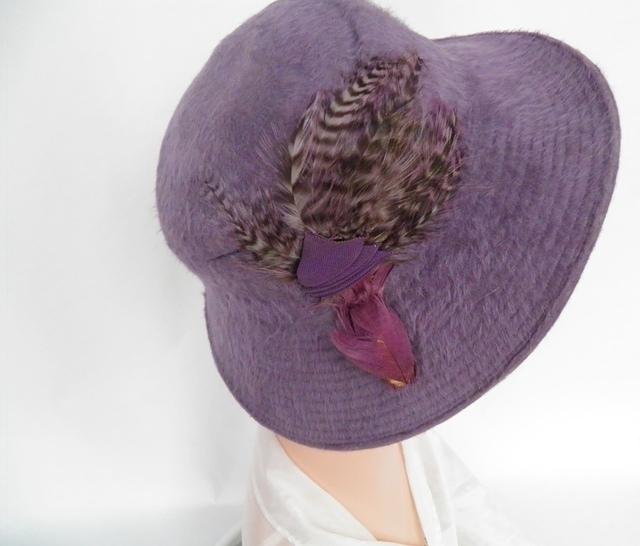 Lavender brimmed felt tilt with bird accent