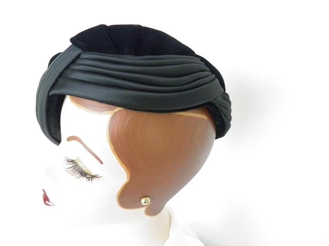 1960s black velvet and satin asymmetrical toque