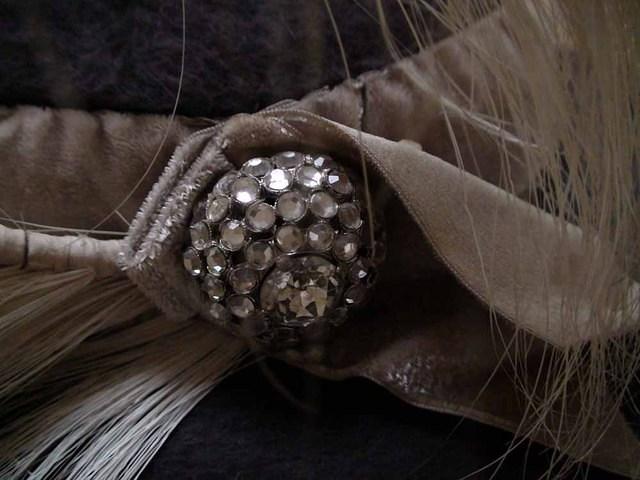 Grey plush pile fur felt picture hat with horsehair plume and rhinestone ornament
