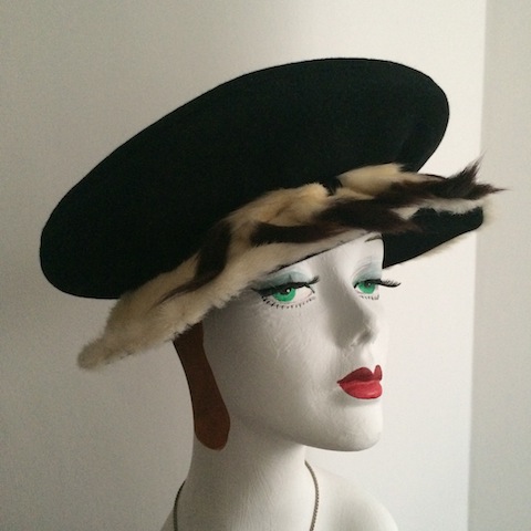 Black felt and ermine hat, Renaissance Revival style reminiscent of the hat worn by Mr Arnolfini in the 15C painting 'The Marriage of the Arnolfini' by the early Netherlandish artist Jan van Eyck.