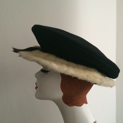 Black felt and ermine hat, Renaissance Revival style reminiscent of the hat worn by Mr Arnolfini in the 15C painting 'The Marriage of the Arnolfini' by the early Netherlandish artist Jan van Eyck.