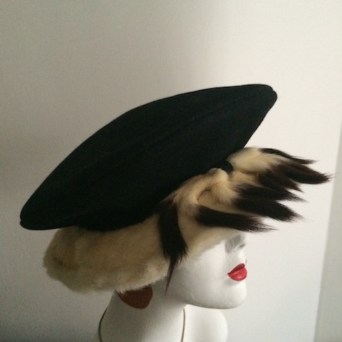 Black felt and ermine hat, Renaissance Revival style reminiscent of the hat worn by Mr Arnolfini in the 15C painting 'The Marriage of the Arnolfini' by the early Netherlandish artist Jan van Eyck.