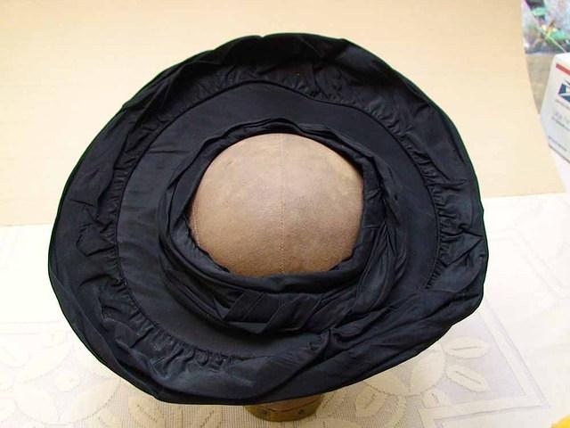Black ruched faille open-crown wide-brim from the 1920s-30s