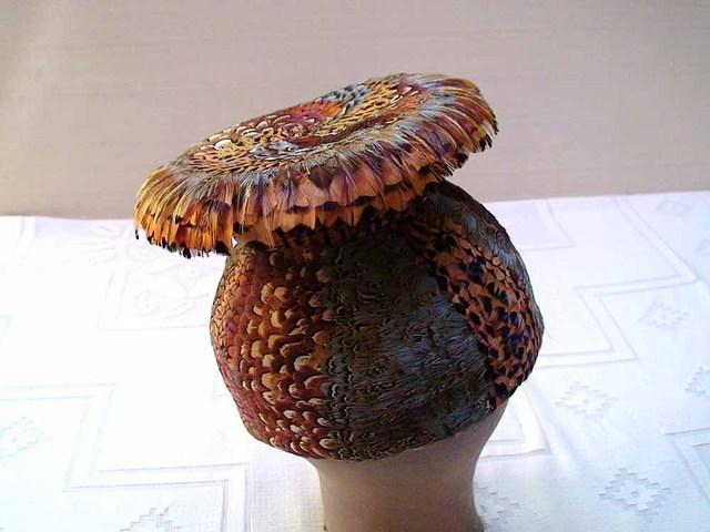 Multi-color pheasant all-over feather African-tribal inspired sculptural toque