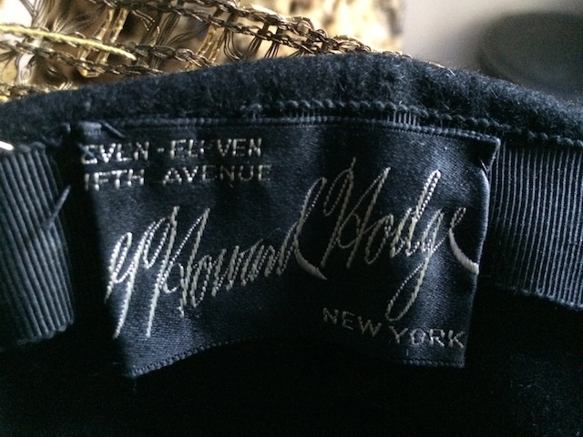 Late 30s sculpted felt Phrygian toque with gold wire trim, pearls and sequins.