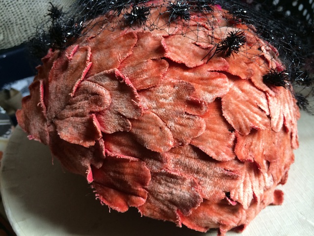 1940s soft orange petalled cap with dramatic veil.