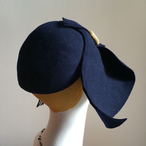WW2 navy felt skullcap with floppy wide brim asymmetric front and pearl clip.