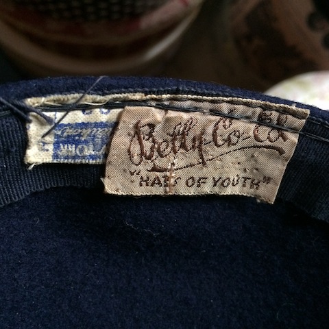 WW2 navy felt skullcap with floppy wide brim asymmetric front and pearl clip.
