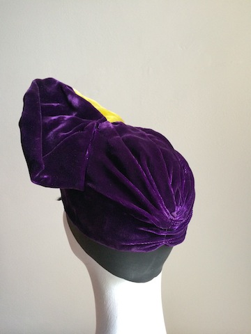 WW2 purple silk velvet halo turban.
