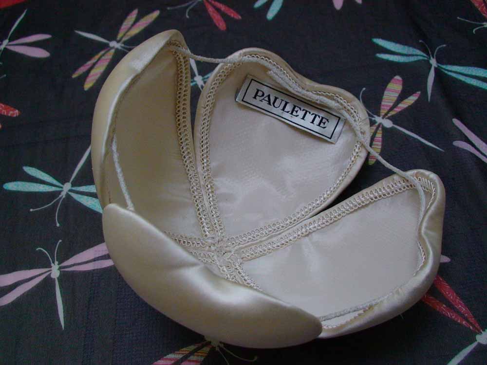 Ivory satin 4-petal beanie with stem. The hat is pristine and came with a Saks Fifth Avenue hatbox with hand-written notation “white satin."