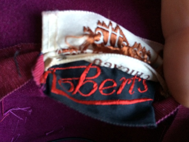 Late 1930s deep fuschia felt Robin Hood with velvet band and two huge sprays of feathers.