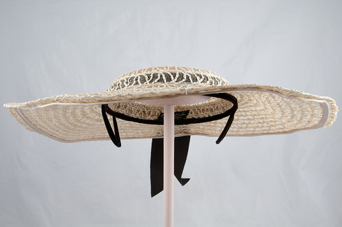Ecru Lace Wide Brim with Brown Velvet Ribbon, circa 1950s