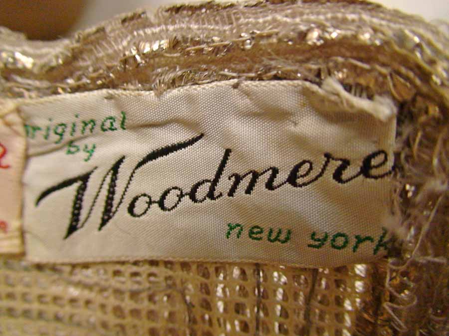 Widow’s peak skull cap made of gold metallic braid, sewn in a diamond shaped pattern.