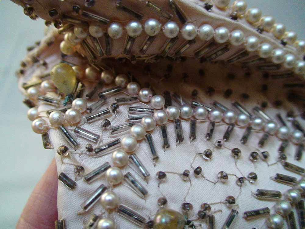 Pale pink beaded eggshell Juliet cap