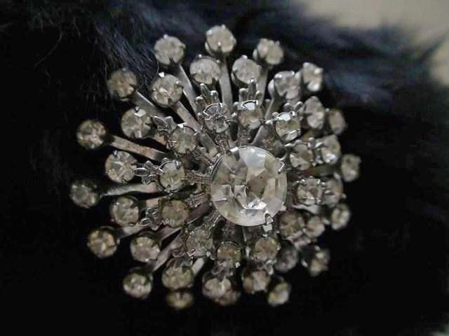 Black fuzzy fur felt wide toque with rhinestone starburst